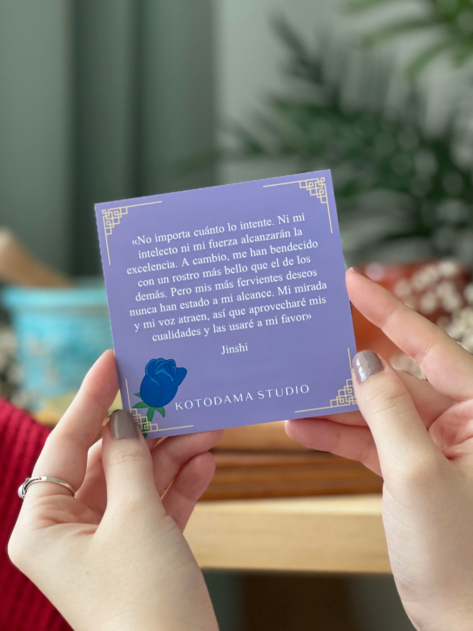 La EDICIÓN ESPECIAL LOVE de JINSHI conserva el mismo aroma e incluye un lazo rojo, una tarjeta especial con una ranita sujetando un cartel con una romántica proposición y una réplica de la horquilla que Jinshi le regala a Maomao como declaración de amor, que puedes colocar en el lazo de la vela. Es el regalo perfecto para esa persona tan especial.