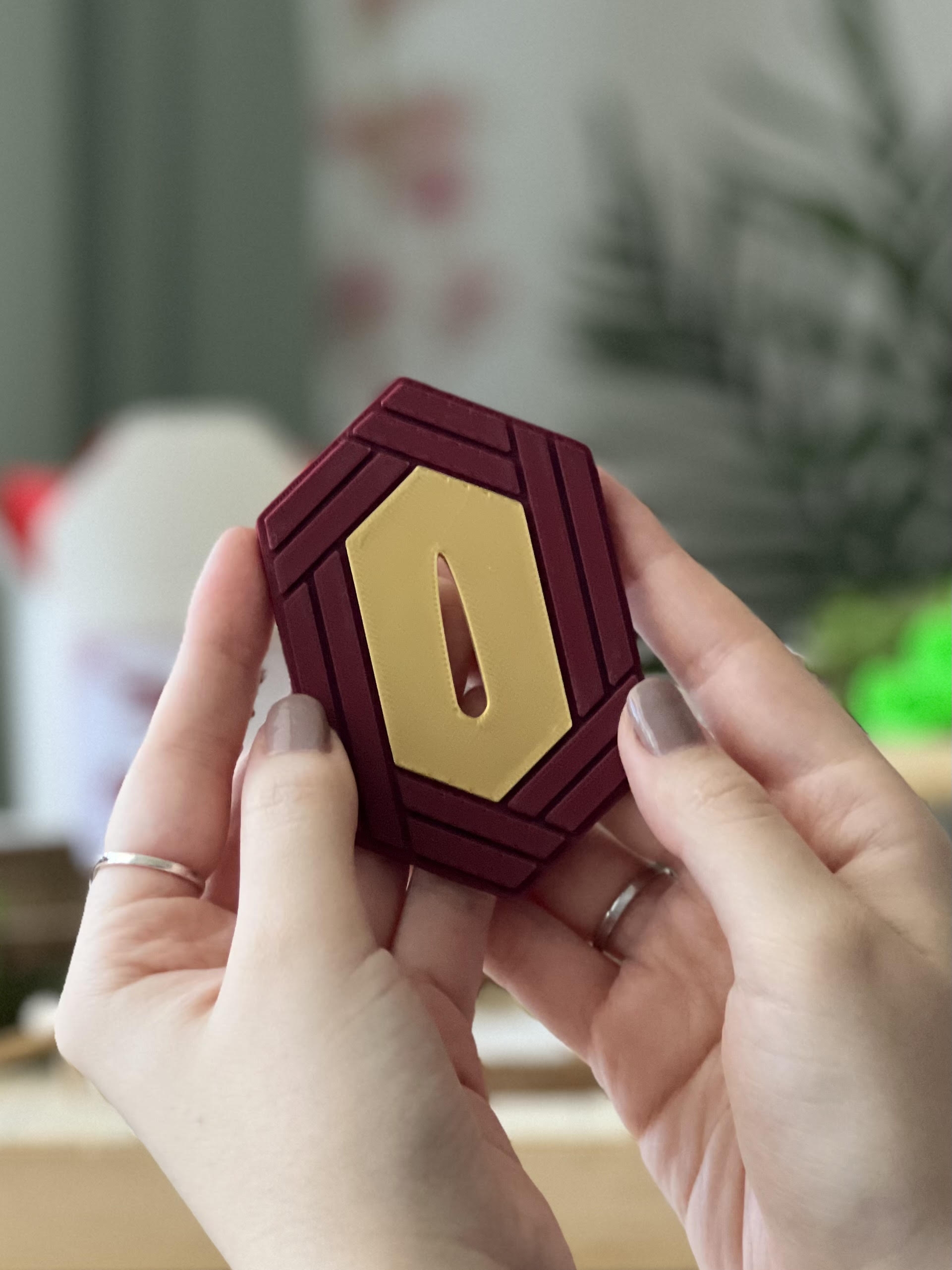 - Una tsuba perteneciente a la espada Nichirin de uno de los miembros del Cuerpo de Exterminio de Demonios.