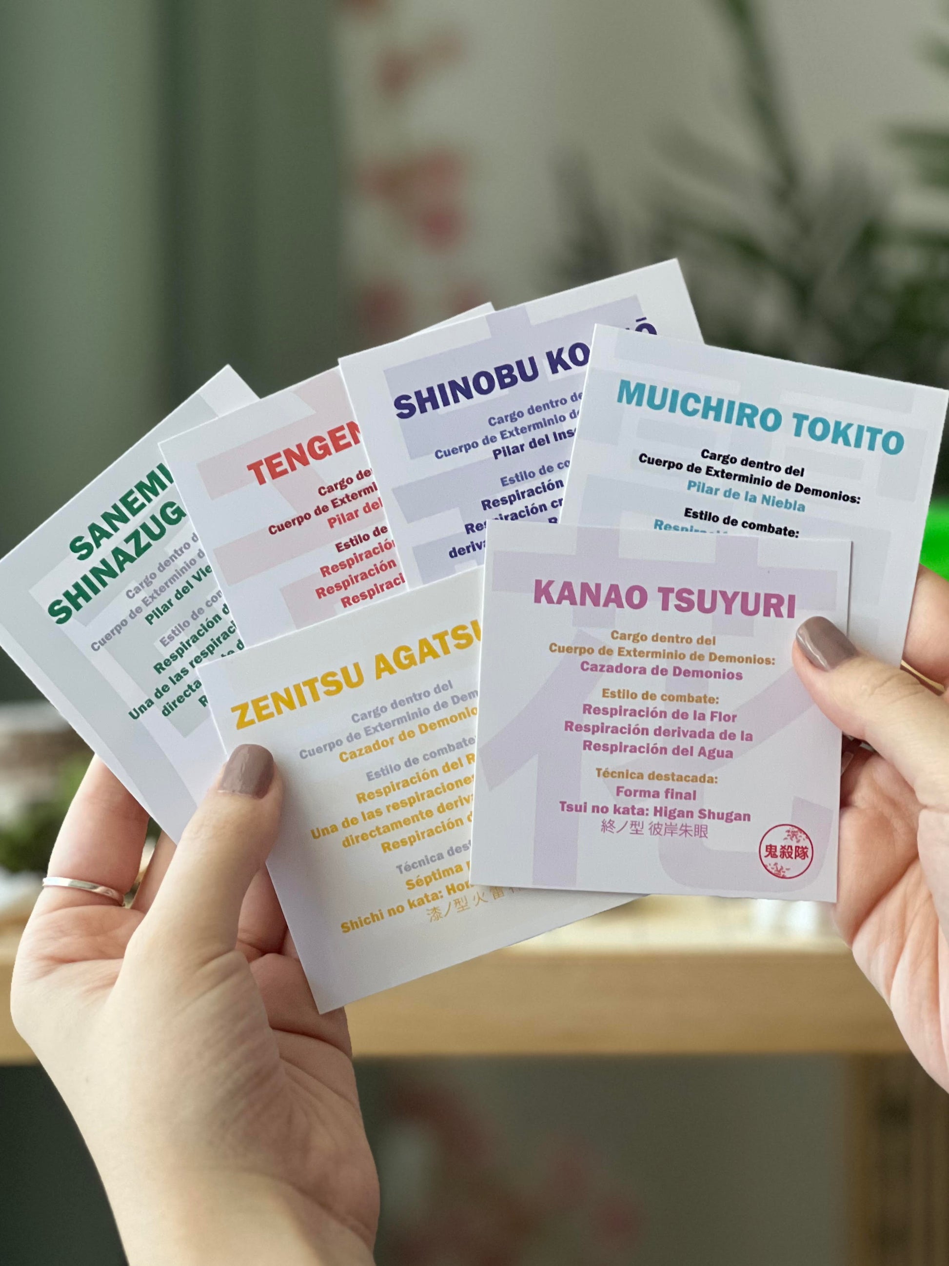- Las seis tarjetas con la ficha técnica de cada miembro del Cuerpo de Exterminio de Demonios.