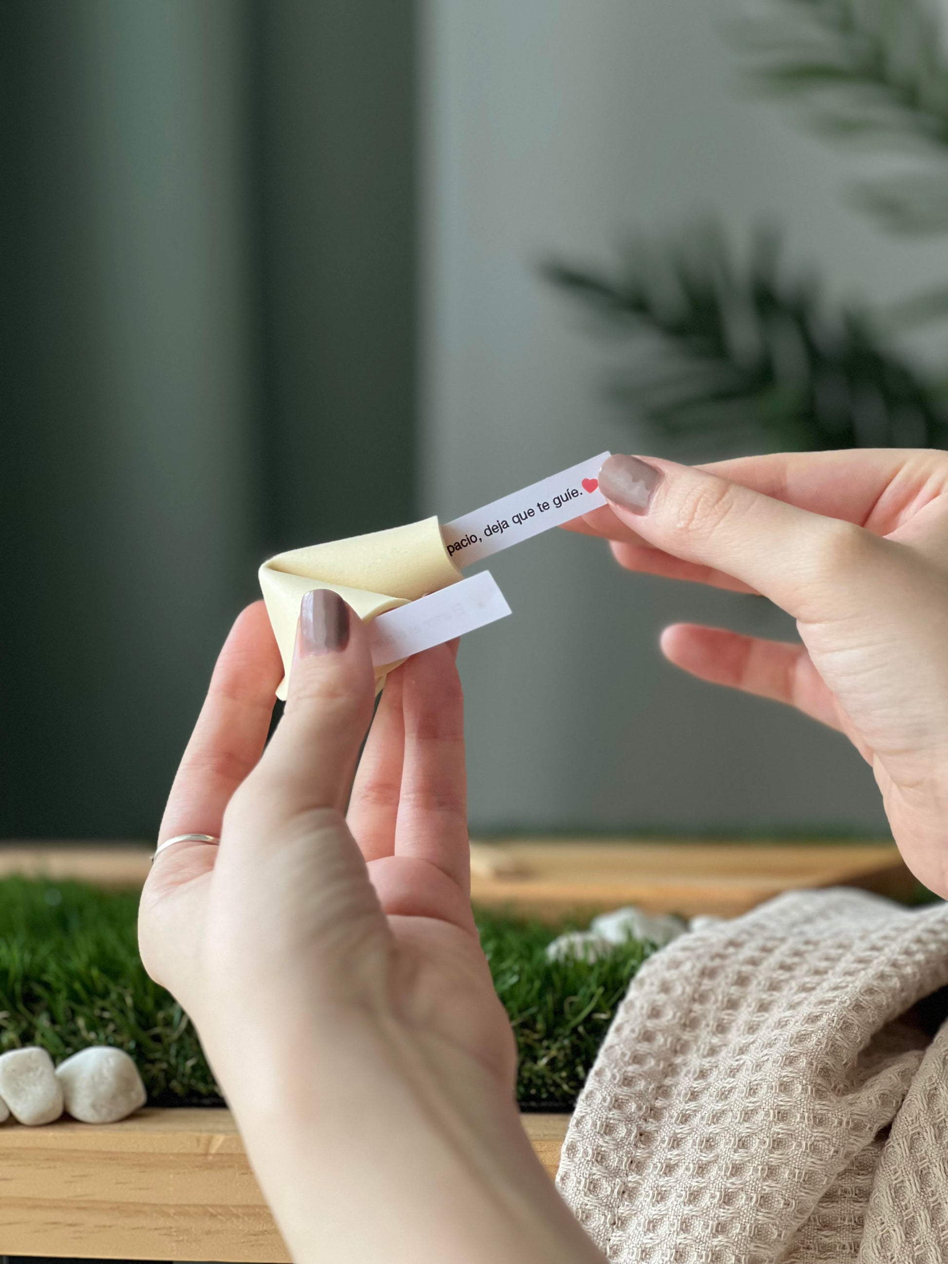 Cuatro galletas de la fortuna decorativas, hechas a mano y con mensajes exclusivos.