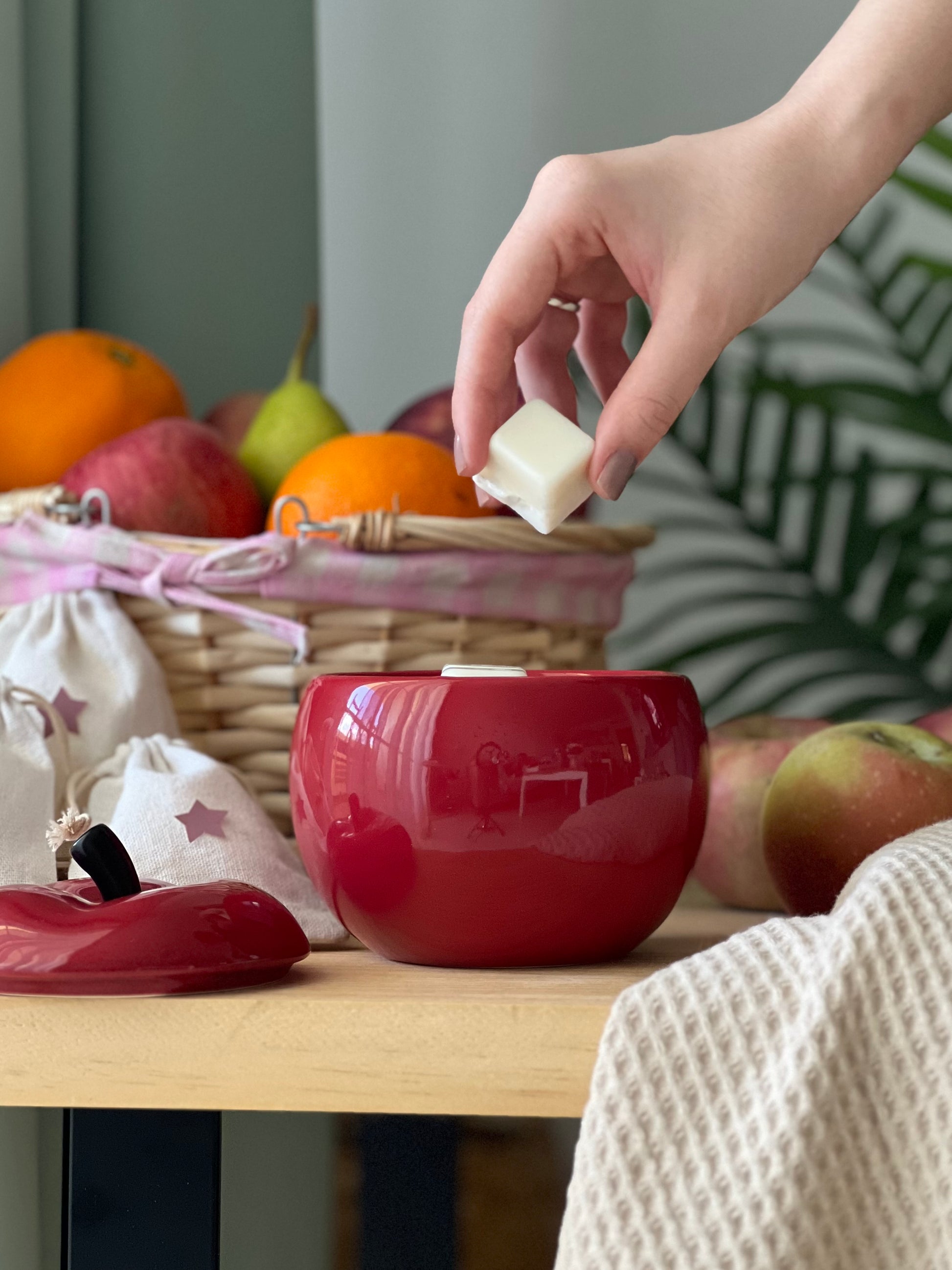 Un aroma a tarta casera hecha con manzanas recién recogidas de los árboles de tu isla y un quemador que parece una de ellas.
